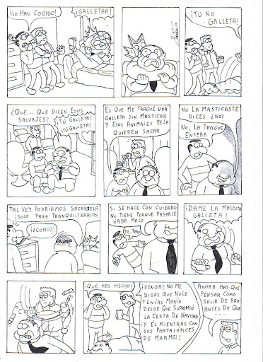 Ha habido gente que esperaba que en esta página se viera al protagonista destripado ¡cielos! ¡no sabía que caía tan mal! Siento desilusionaros pero la historia continúa con los mismos protagonistas...de momento...